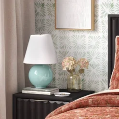 Upgrade your indoor lighting with this Ceramic and Wood Table Lamp (Includes LED Light Bulb) from Threshold™. This modern-design table lamp features a black ceramic base with a natural wood accent for mixed-material appeal. The white fabric shade exudes a soft, warm glow when turned on and finishes off the modern look, while the on/off light setting with a turn-knob rotary switch allows for easy function. Place it on the side table next to your sofa or console in your living room or entryway for an inviting glow.