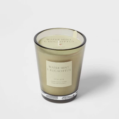 Elevate your space with this Colored Vase Glass with Dustcover Water mint and Eucalyptus Candle Green – Threshold™. It features water mint and eucalyptus to infuse your surroundings with a soothing scent. The glass vase adds a touch of elegance to any room. Whether you’re unwinding after a long day or setting the mood for a special occasion, this Colored Vase Glass with Dustcover Water mint and Eucalyptus Candle Green – Threshold™ creates a relaxing ambiance.